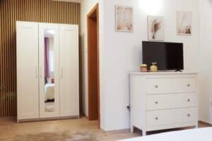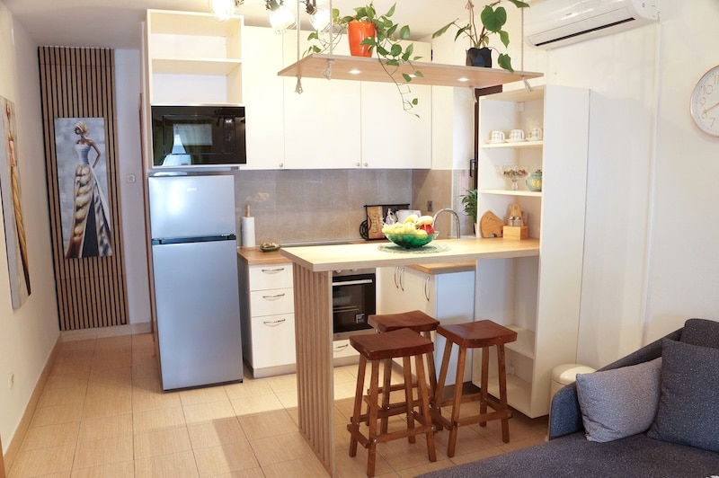 Apartman je idealan za boravak dvije do tri osobe, ali može se se smjestiti još jedna osoba na dodatnom ležaju u blagavaonici.